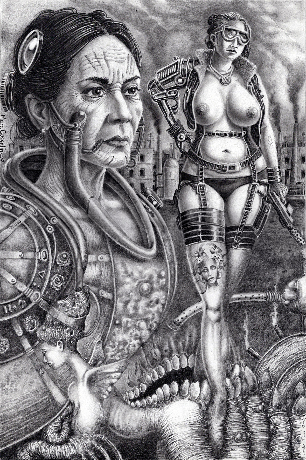 This technique was invented in 1925 by the surrealists Yves Tanguy, Jacques Prévert, André Breton and Marcel Duchamp, is similar to an old parlour game called Consequences in which players write in turn on a sheet of paper, fold it to conceal part of the writing, and then pass it to the next player for a further contribution. The name ‘cadavre exquis’ was derived from a phrase that resulted when they first played the game, ‘le cadavre exquis boira le vin nouveau’ (‘the exquisite corpse will drink the new wine’).
